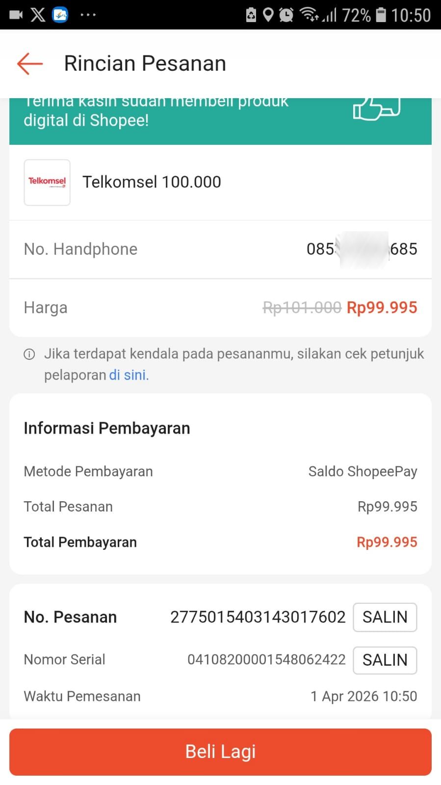 | 5 | SE********** | 08******2722 | Aplikasi sudah bagus dan banyak membantu, trimakasih 👍 | ww*************ti@gmail.com | Terkirim 1 Apr 2026 | Lihat |